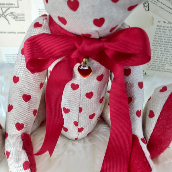 Her name means "loved" - it seemed appropriate for a teddy covered in love hearts.